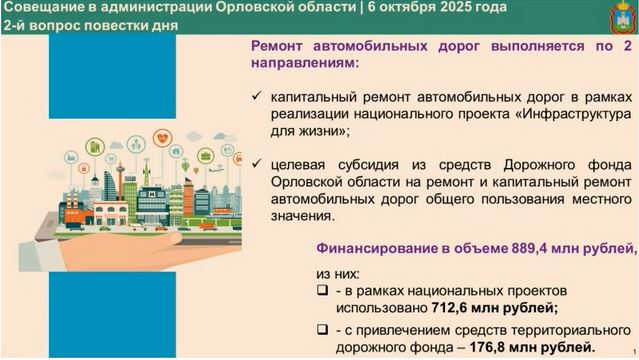 В 2025 году на ремонт автомобильных дорог направлено 889,4 млн рублей, из которых на реализацию национального проекта использовано 712,6 млн рублей с привлечением средств территориального Дорожного фонда 176,8 млн рублей.