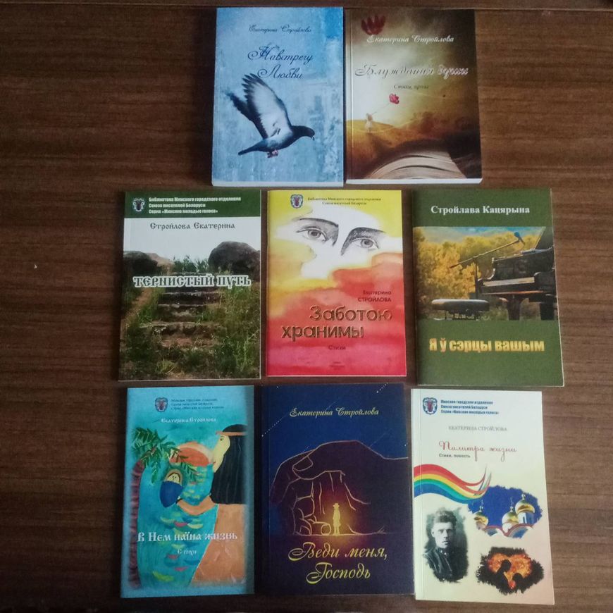 Среди произведений Екатерины Стройловой отдельное место занимают белорусскоязычные стихи. Это произведения о любви к Беларуси: описания природы и родной земли. "Есть и размышления о жизни и духовности, лирические мотивы. Их не так много, но я их очень люблю. Они выигрывали в конкурсах, были опубликованы после победы в них, а на телевидении делали ролик на основе одного из моих стихов на белорусском", - добавила поэтесса.