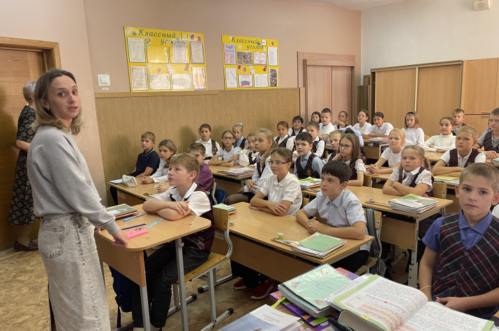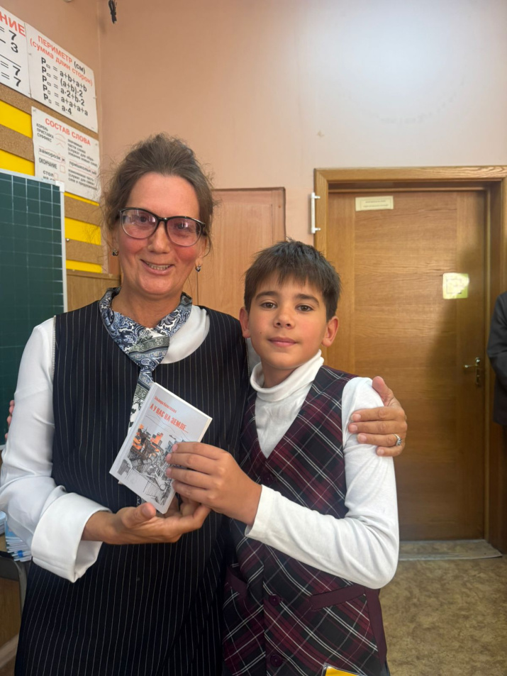 30 сентября 2025 года в рамках «Разговора о важном» «Паруса» посетили школу №25 имени Героя России Алексея Леонидовича Рыбака во Владивостоке. Руководителя студии Эльвиру Васильевну Кочеткову встретила на проходной Елена Игоревна Шкарина – учитель начальных классов, учитель Православной культуры в четвёртых классах, преподаватель дополнительного образования.