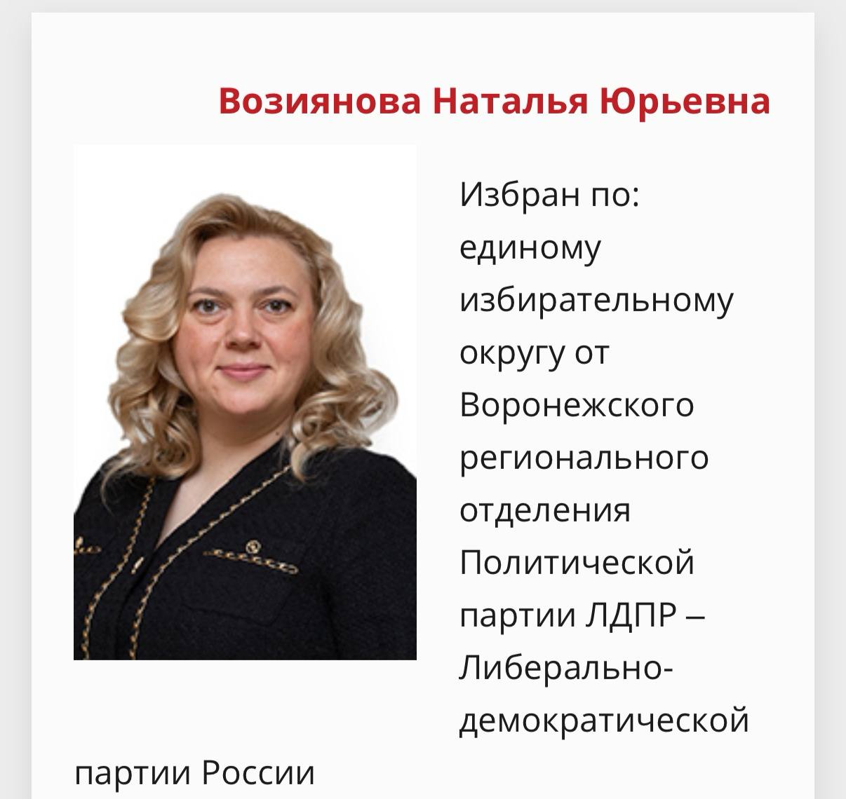 Возиянова – единственный депутат облдумы от ЛДПР. Мандат ей удалось получить, избравшись по спискам. При этом в бюллетенях она находилась на втором месте. На первом был председатель либерал-демократов Леонид Слуцкий. После своего избрания он закономерно отказался от депутатского кресла в нашем регионе, которое и перешло к Наталье Возияновой.
