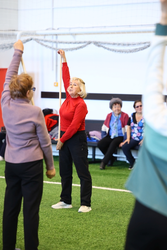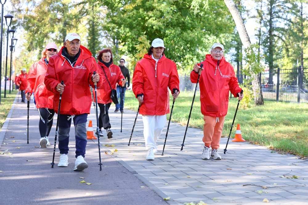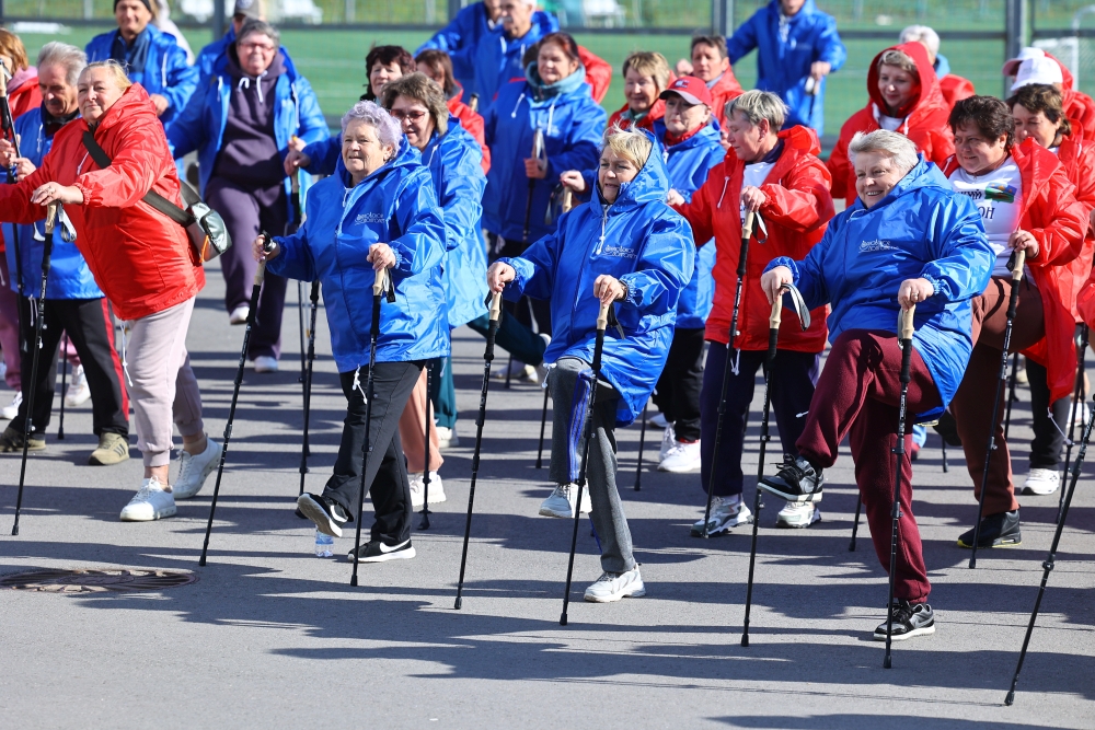 После разминки участники фестиваля прошли оздоровительный маршрут по Парку Победы в рамках акций «День ходьбы» и «10000 шагов к здоровью». Затем представители золотого возраста собрались в манеже, где их ожидало немало активностей, среди которых под аккомпанемент гармони прошли спортивная и дыхательная гимнастика, дартс и настольные игры, волейбол и мастер-класс по скандинавской ходьбе.