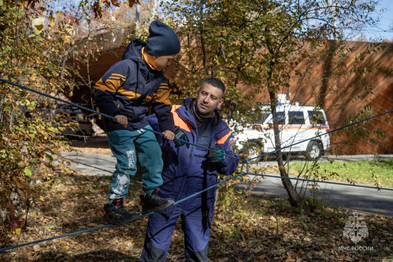 Между деревьями спасатели поисково-спасательного отряда МЧС России натянули тросы, превратив тихий уголок парка в полигон для смельчаков, где ребята всех возрастов преодолевали условный овраг. Тут же кинолог со своим четвероногим напарником - лабрадором Джемом демонстрировали работу расчета. Анатолий Пиленко рассказал, какую подготовку проходят собаки, чтобы участвовать в поисках заблудившихся в лесу или оказавшихся под завалами людей. Поделился и тем, как обучался сам. Гости с восторгом играли с Джемом и делали памятные фотографии.