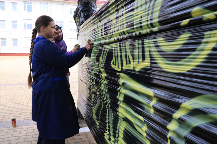 В текущем году жюри приняло уникальное решение, наградив сразу двух участников: брянца Назара Харитонова и Александру Лебедеву из Ярославля. Их наброски были гармонично соединены в общий эскиз, над которым команда граффити-художников трудилась на протяжении месяца.