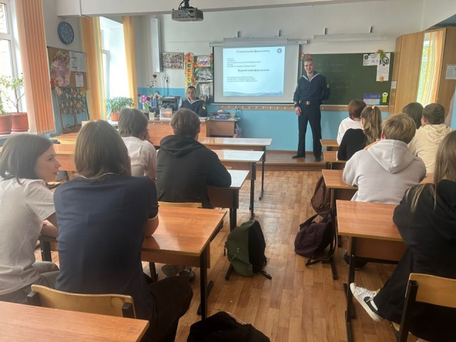 6 октября кафедрой языковой подготовки МГУ им. адм. Г.И. Невельского совместно с деканатом ФСЭ в рамках профориентационной работы была проведены встречи курсантов ФСЭ под руководством старшего преподавателя Я.О. Чубченко со школьниками 10-х и 11-х классов МБОУ «СОШ N° 77» и МБОУ «СОШ № 63» (г. Владивосток) с целью привлечения их к обучению в Морском университете.