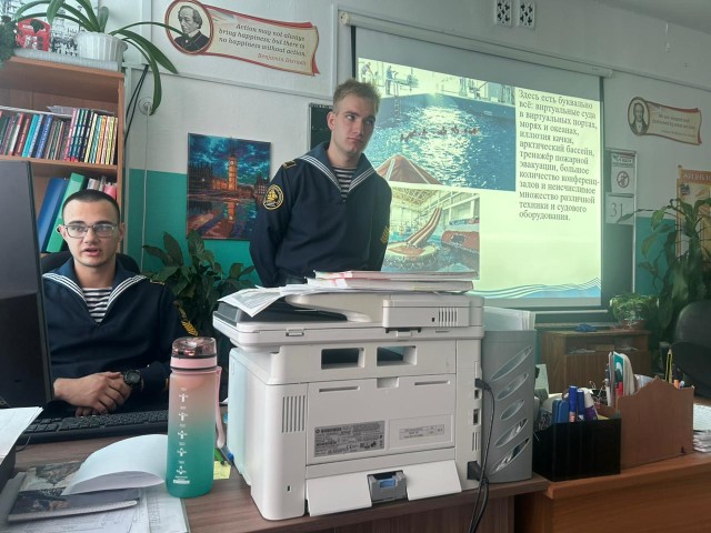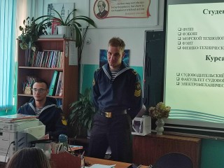 Для проведения встречи со школьниками была подготовлена презентация, рассказывающая об особенностях обучения в морском вузе, а также о различных мероприятиях, которые проводятся в стенах университета.
