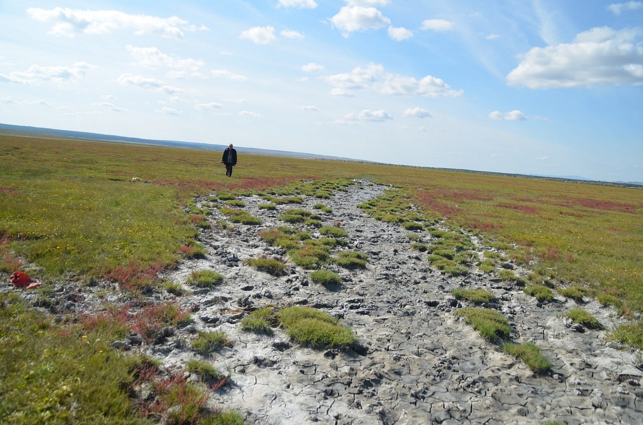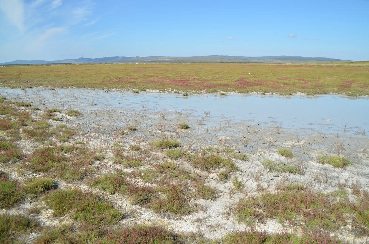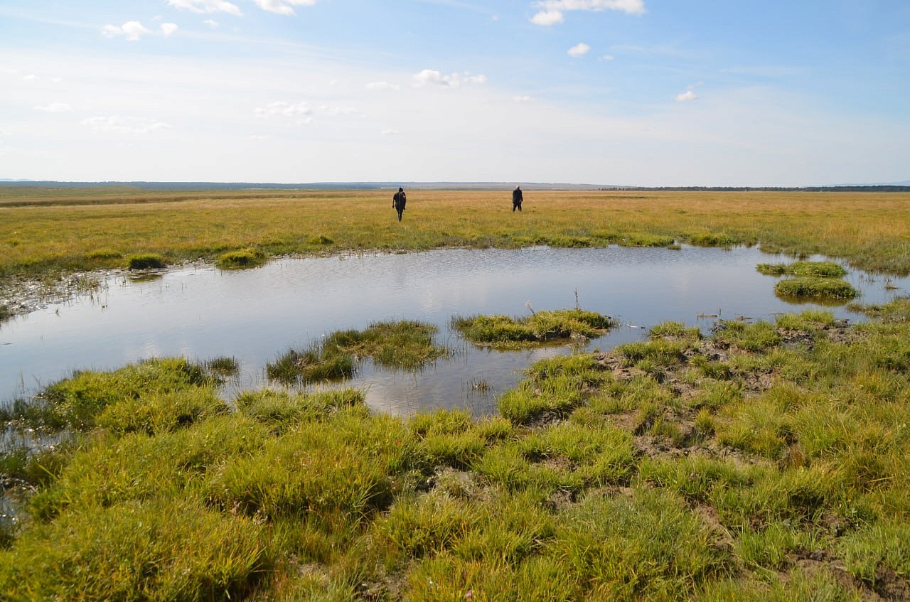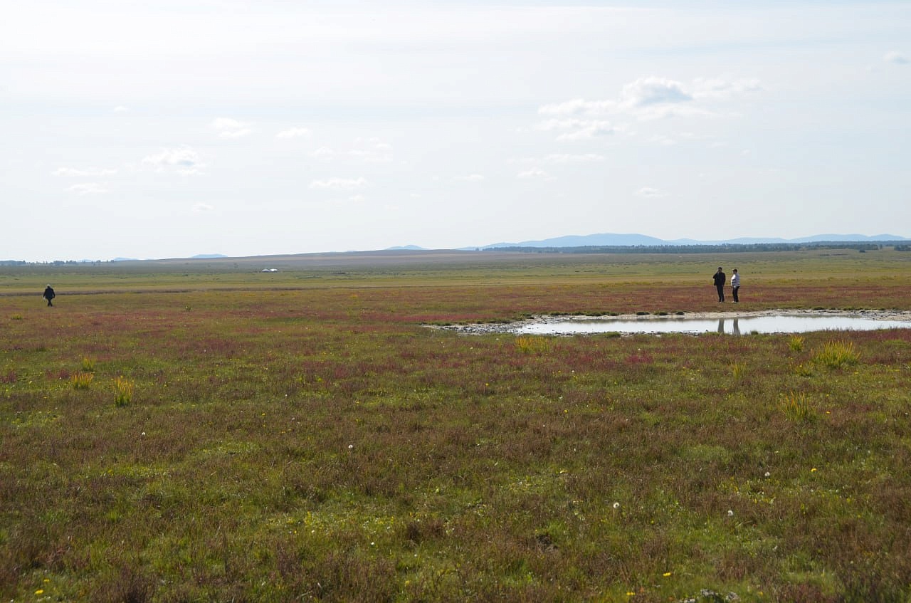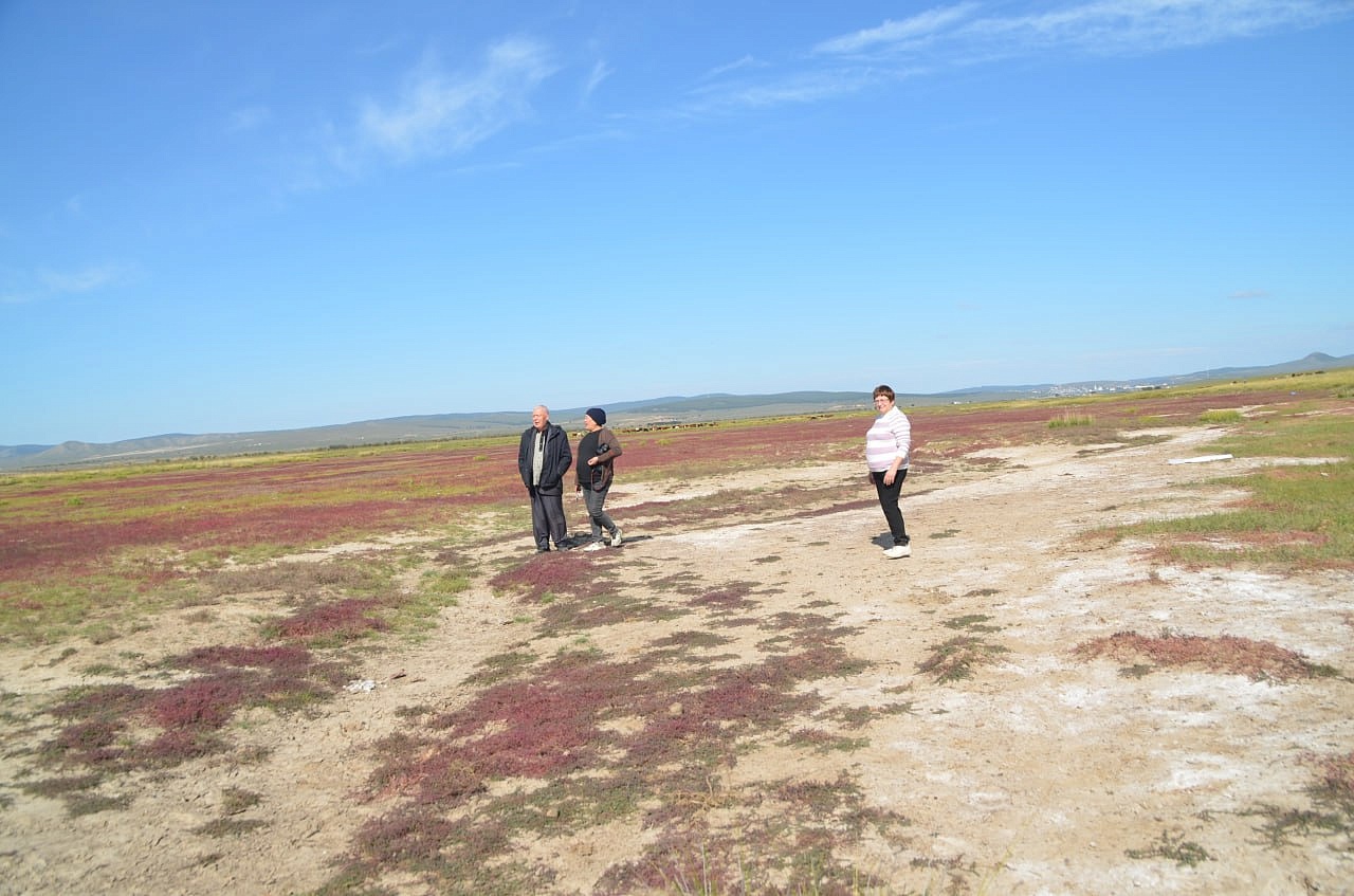 Вот эту речку Буру экспедиция под руководством Захаренко искала за Алтан- Булаком по картам Игоря Антоновича. И ведь нашли в болотистой низине. Долго плутали по местности, ходили по кочкам, по сухим белёсым, очевидно, от соли ручейкам, по грязи. Там много разливается разных ручейков при дождях, предположили мы. Игорь Антонович даже провалился в одном месте в болото. Где-то выше этого места должны были быть ключи. Место вполне подходило для стоянки дипмиссии на возвышенности с зелёной травой. И карта показывала это место. Ещё и знак нашёлся, маленькая плоская фигурка из листа железа, напоминающая нам про Савву Рагузинского, которую нашла Татьяна Александровна Бояркина.