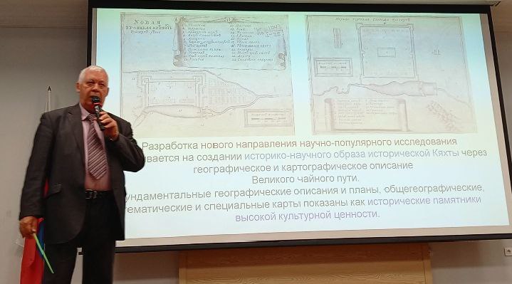 Сегодня в очередной раз будет представлен Великий чайный путь, сказал автор труда. В книге 680 страниц, 580 цветных карт и иллюстраций. Это фундаментальный научный труд по архивным материалам и новизной - подходом к региональному историческому процессу Российского пути на Восток и, прежде всего, в Китай. Книга посвящена одному из важных достижений в истории России, Монголии и Китая - формированию исторической Кяхты на Великом чайном пути. Решается научная задача реконструкции исторической Кяхты на Великом чайном пути. Великий чайный путь является общенациональным культурным наследием России-Бурятии, Китая и Монголии. Обратил внимание на страноведческое познание Великого чайного пути. Первоначально Великий чайный путь создала природа. Роль человека в создании инфраструктуры: дороги, населённые пункты, пункты питания и ремонта.