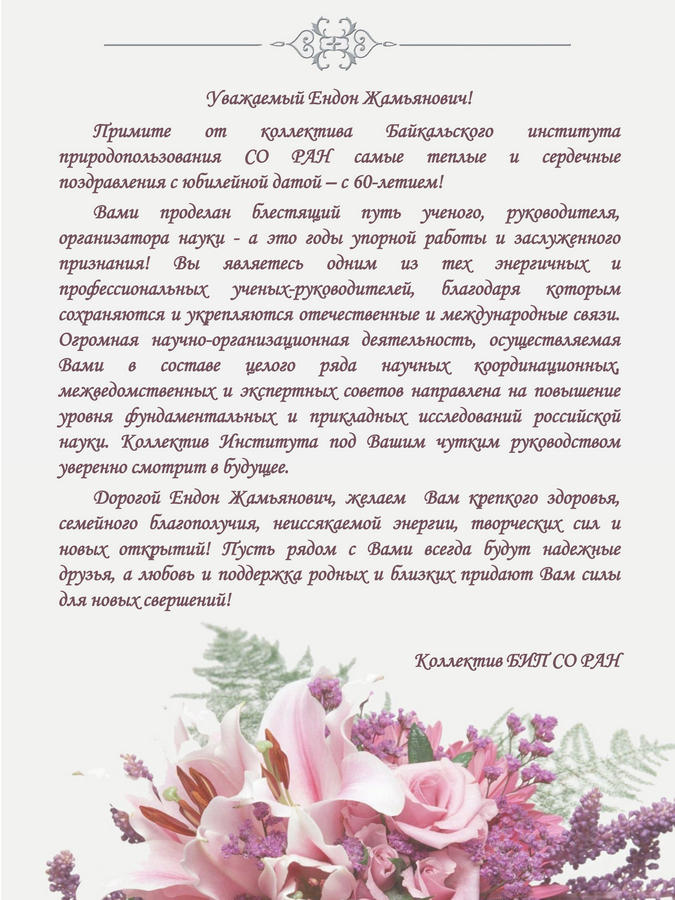 Поздравляем директора БИП СО РАН Гармаева Ендона Жамьяновича с юбилеем!