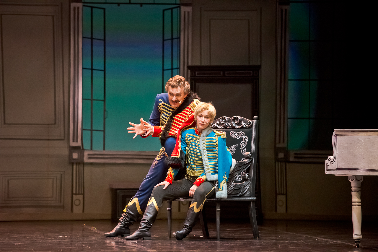 Вся музыка Тихона Хренникова в спектакле звучит в исполнении оркестра под управлением дирижера-постановщика Юрия СОСНИНА – это обновленная музыкальная партитура, дополненная фрагментами из других произведений композитора. На премьере роль Шурочки сыграла солистка театра Ирина РОЙЗ, и в ее исполнении особенно трогательной получилась колыбельная «Светлана». Герой с пышными усами и кудрявой головой, лихой повеса поручик Дмитрий Ржевский предстал в трактовке Михаила ДЕРГИЛЕВА. Артист создал образ, который неизбежно вызывает ассоциации с блестящим исполнением Юрия Яковлева в фильме.