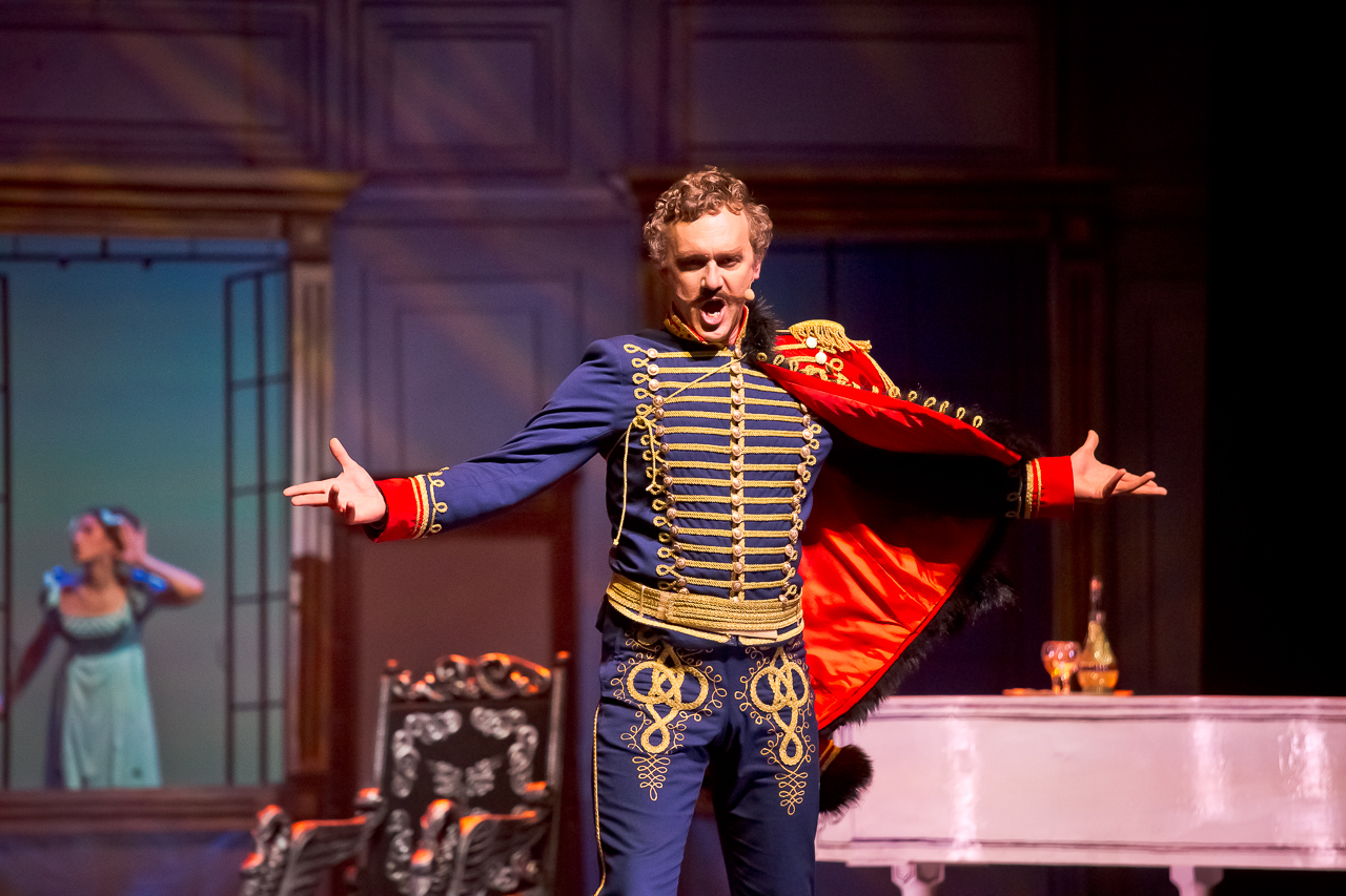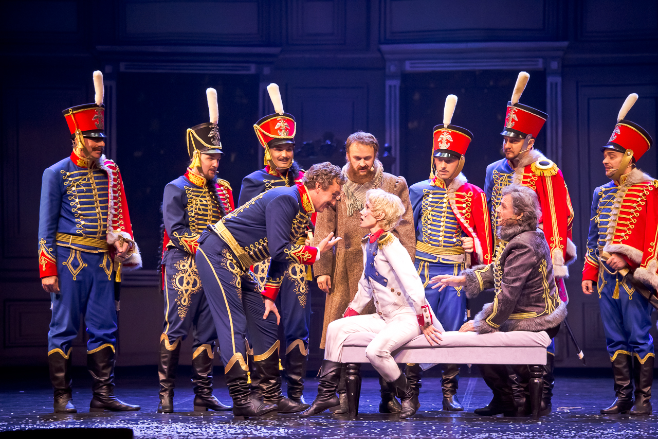 Интересно решены батальные сцены, которые всегда непросто воплотить в пространстве театра. Постановщики нашли оригинальный ход, сочетая игру света и тьмы с замершими пластическими композициями и хореографией в постановке петербургского балетмейстера Владимира РОМАНОВСКОГО. Этот прием создает иллюзию масштабного сражения и убедительно показывает гусарскую удаль даже без настоящих лошадей на сцене.
