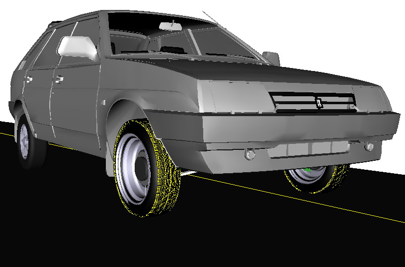 В программном комплексе «Универсальный механизм» упругая шина моделируется оболочкой с применением трапецеидального конечного элемента. Модель конечного элемента учитывает многослойный характер материала шины.