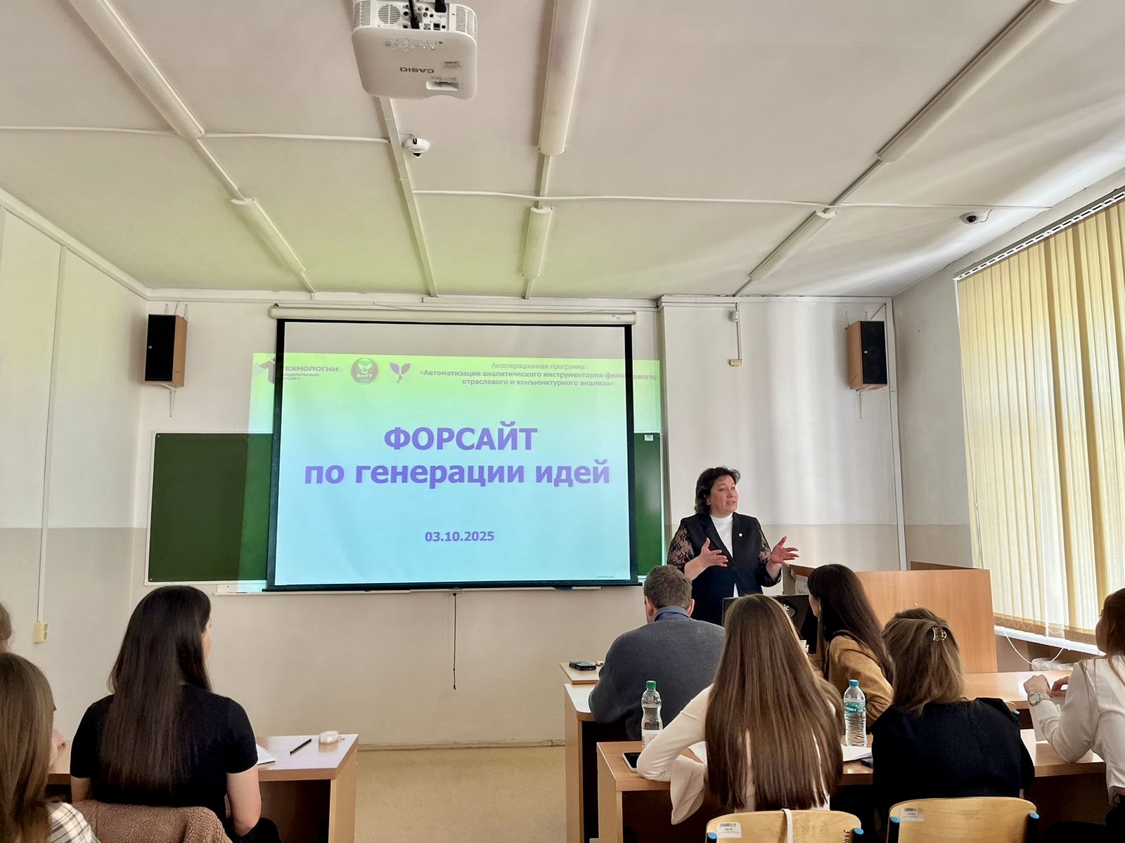 В рамках акселерационной программы «Автоматизация аналитического инструментария финансового, отраслевого и конъюнктурного анализа» 3 октября 2025 года в Вятском государственном университете состоялась форсайт-сессия по генерации идей с командами и их наставниками