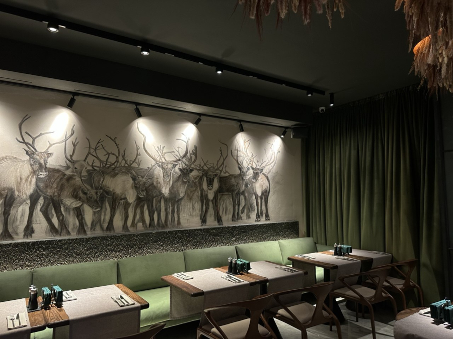 Отведать под взглядом северных оленей, которые нарисованы на стенах ресторанного зала, как блюда, секрет которых передается в семье владельца ресторана из поколения в поколение, так и авторские творения шеф-повара. Туристам точно придётся «ко двору»: тут и ежики с крабами в аквариуме, и все-что-угодно из оленины. Особенно хороши из нее, кстати, мини-голубцы с грибным даси.