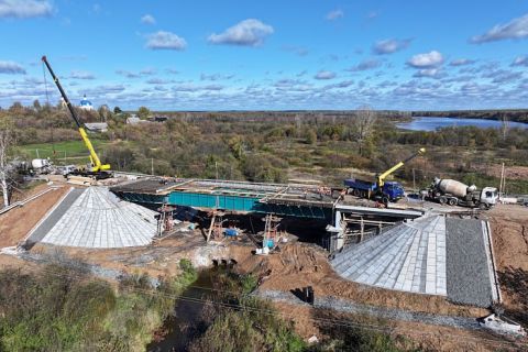 Мост на дороге Криуша — Советск — Лебяжье — Вершинята связывает 4 района Кировской области и обеспечивает выход на федеральную трассу Р-243. По сведениям регионального минтранса, сейчас он готов на 75%: строители монтируют армокаркас и опалубку для плиты проезжей части.