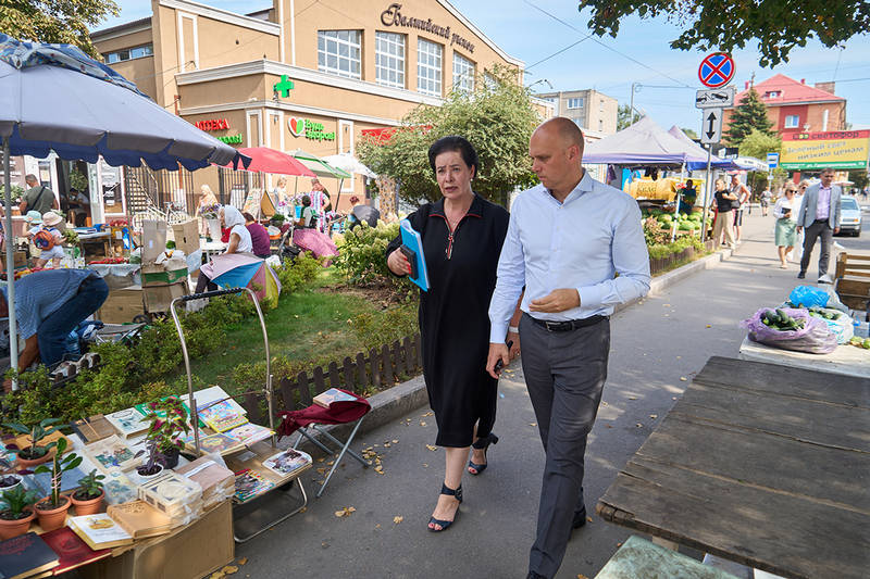 Глава администрации Калининграда Елена Дятлова; губернатор Алексей Беспрозванных - у Балтийского рынка в Калининграде..