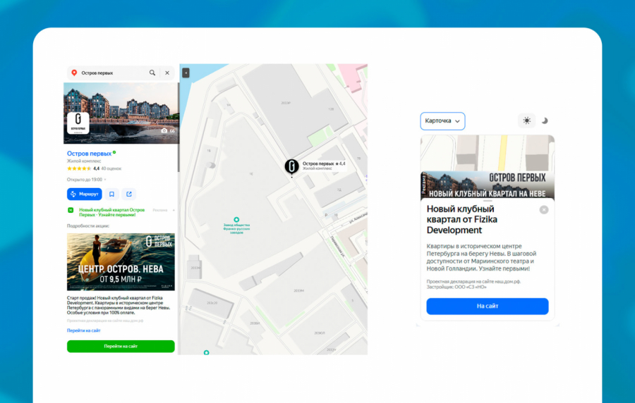 Брендированный приоритет с POI в «Яндекс Картах» и Баннер при построении маршрута в «Яндекс Навигаторе»