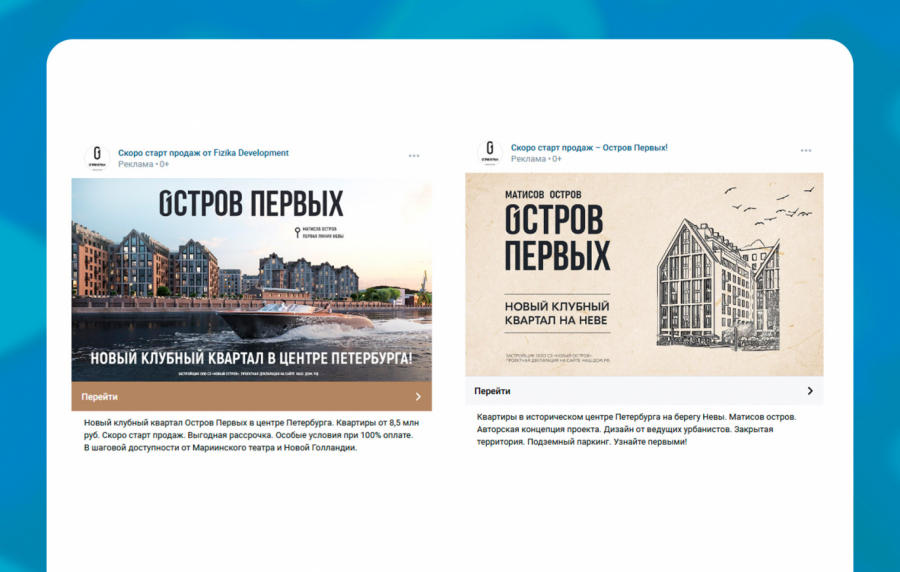 Дизайн, основанный на данных. Мы не гадали, что сработает, а проверяли. С помощью A/B-тестов постоянно оптимизировали креативы: какие изображения вызывают больше отклика у разных сегментов аудитории, какие формулировки УТП и призывы к действию работают лучше. Это позволило быстро отсекать неэффективное и масштабировать успешные гипотезы, напрямую влияя на снижение стоимости лида.