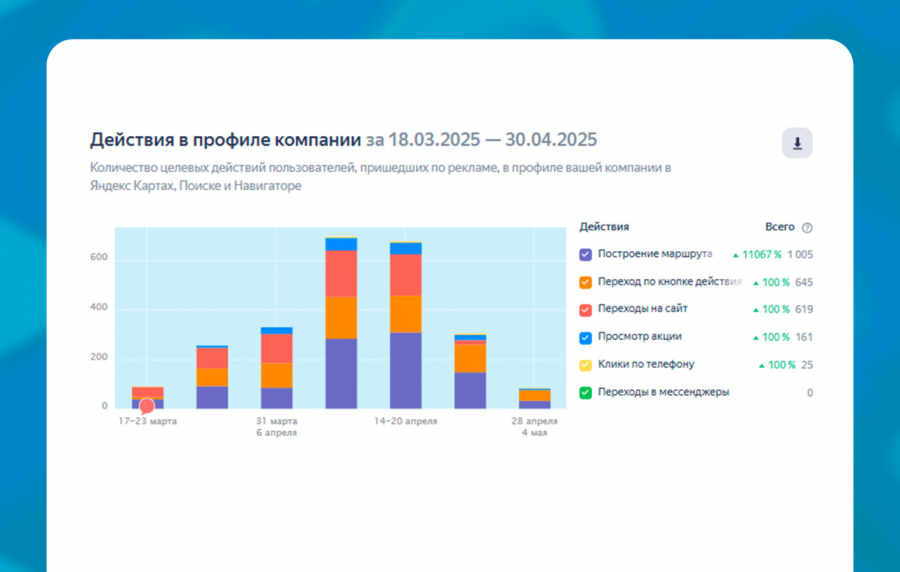 Важной частью кампании была работа по постоянному мониторингу и оптимизации. В апреле снижение CPA указывает на грамотный анализ