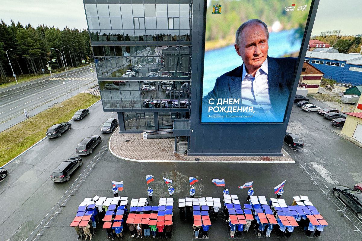 Также в Ханты-Мансийске активисты «Единой России» и МГЕР провели флешмоб. Более 130 человек выстроились в фамилию Президента страны, создавав композицию в цветах российского флага на фоне экрана с надписью: «С днём рождения, Владимир Владимирович!».