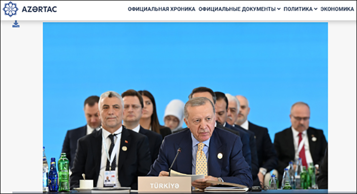 Президент Турции Реджеп Тайип Эрдоган на саммите ОТГ в Азербайджане 7 октября. Скриншот с сайта azertag.az