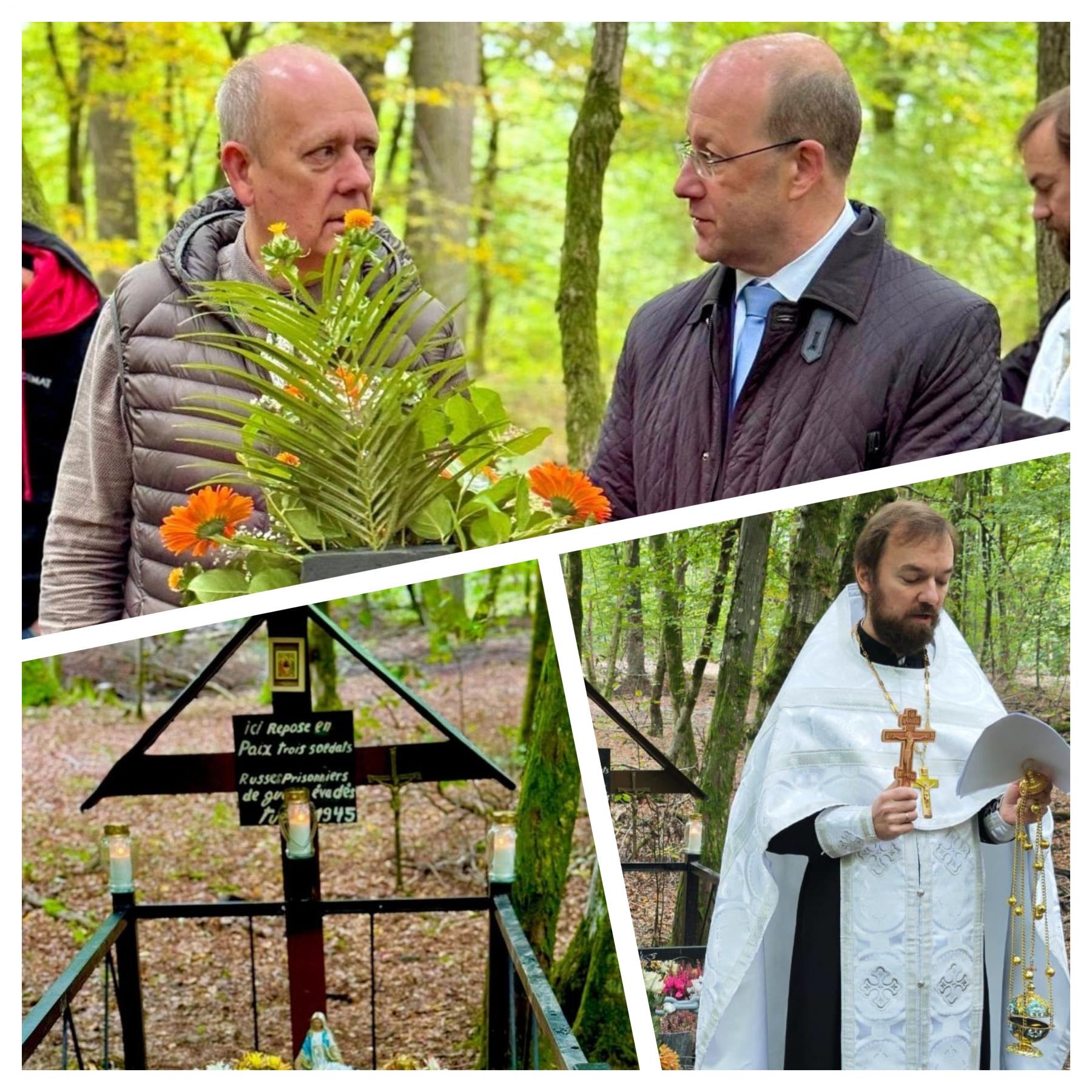 Генеральный консул России в Страсбурге В.Павлов совместно с мэром французского города Фольклен (регион Лотарингия) возложили цветы к восстановленной могиле трёх советских солдат, бежавших из концлагеря в последние месяцы нацистской оккупации Франции и расстрелянных фашистами. Иерей Свято-Троицкого кафедрального собора в Париже отец Антоний Сиденко совершил чин освящения надгробного креста и отслужил заупокойную литию. Мы храним память о великой жертве советского народа в годы Второй мировой войны и с глубоким уважением чтим подвиг соотечественников — участников французского Движения Сопротивления.