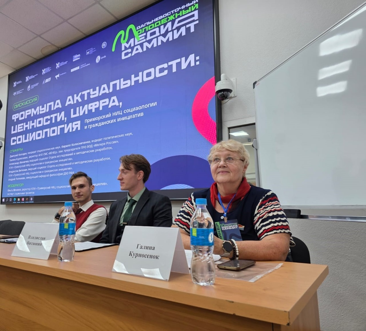 В рамках Второго Дальневосточного молодежного Медиасаммита члены Общественной палаты Приморского края Елена Ардальянова и Галина Курносёнок 3 октября 2025 года приняли участие в сессии «Формула актуальности: ценности, цифра, социология»