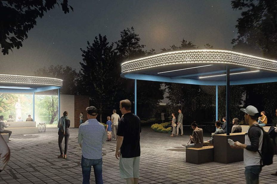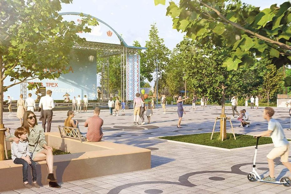 Также в парке появится четвертая зона для общих мероприятий. Ее оборудуют сценой, скамейками и трибунами для проведения мероприятий, объединяющих жителей села. Для отсылки к местной культуре в парке установят входную группу в виде трех арок, символизирующих старшее, среднее и младшее поколения.