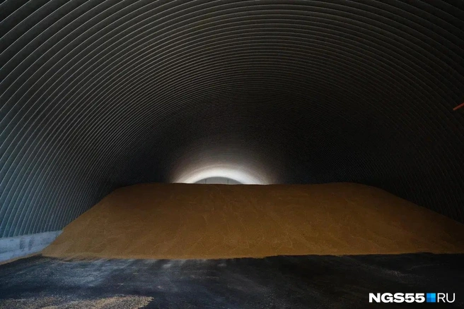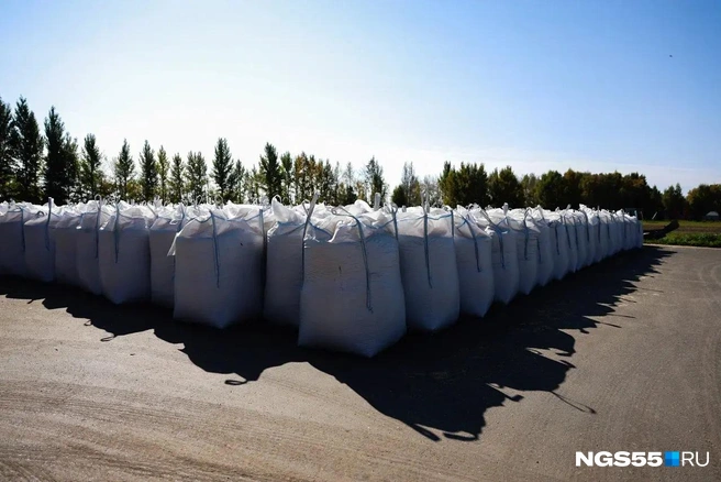 В агрохолдинге в этом году соберут рекордный по объему урожай. Склады уже переполнены, поэтому зерно будут паковать в рукава и хранить на улице.