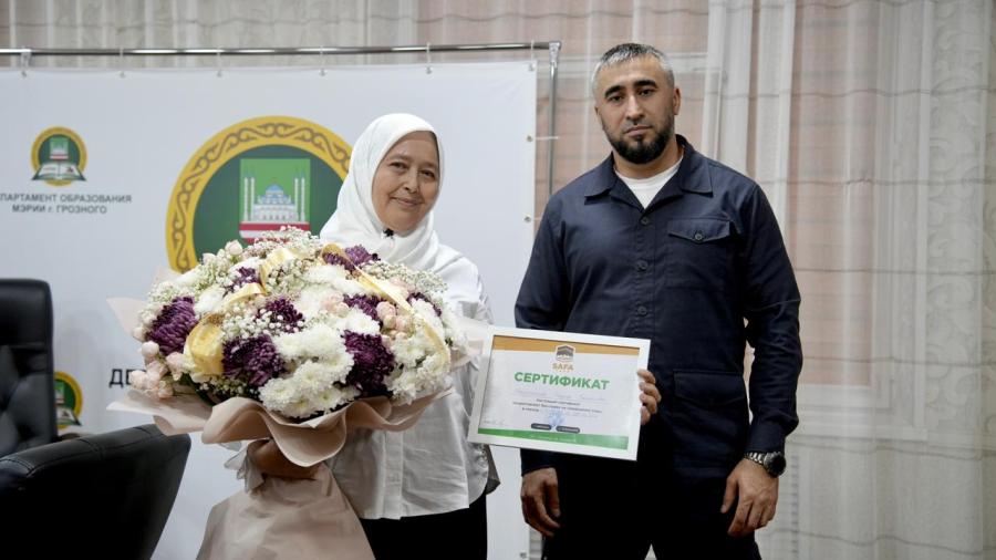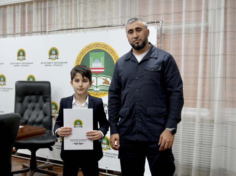 В Департаменте образования мэрии Грозного состоялась встреча заместителя директора Зелимхана Ахматова с Мадиной Башаевной, её учеником и родителями Халида. От имени мэра города и фонда учительнице был вручен сертификат на совершение Умры.