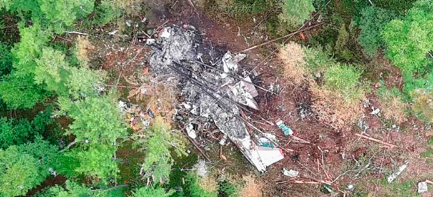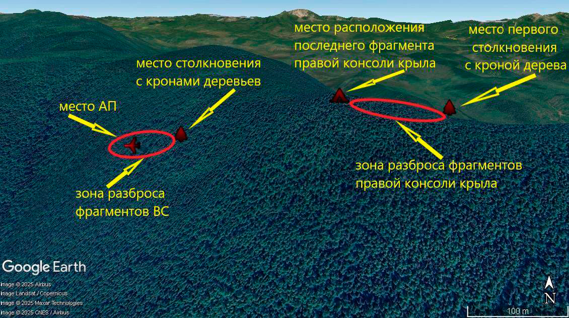 Расположение рухнувшего воздушного судна и его фрагментов. Отчет МАК.