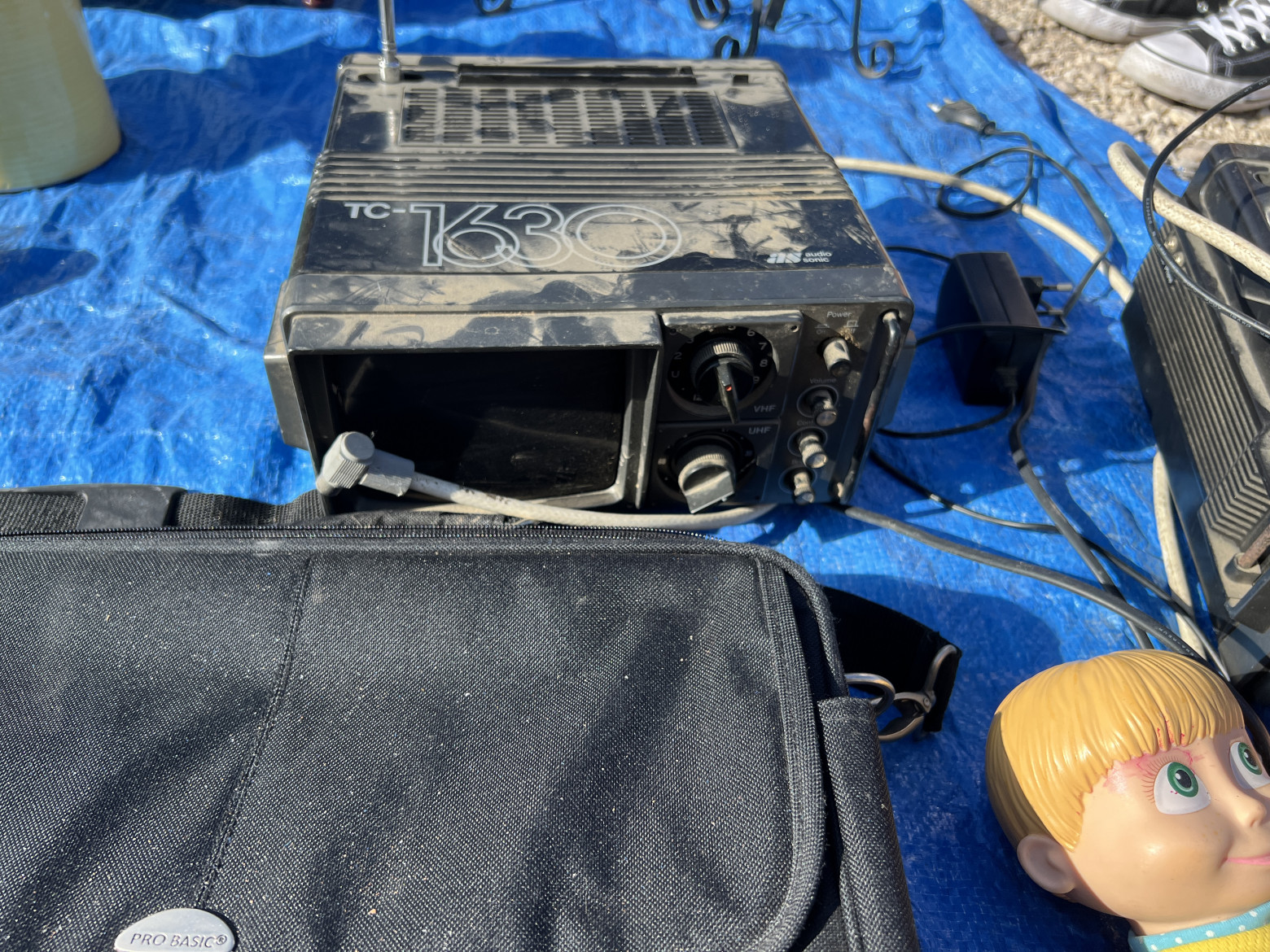 Переносной телевизор TC-1630 от марки Audiosonic, выпускавшийся в конце 1970-х — начале 1980-х годов. Это компактный черно-белый телевизор с ручкой для переноски, телескопической антенной и тюнером диапазонов VHF/UHF. Экран у него кинескопный, около 5–6 дюймов по диагонали. Такие устройства часто использовались в автомобилях, кемперах или на дачах как портативные ТВ-приемники, работающие как от сети, так и от автомобильного питания 12 В.