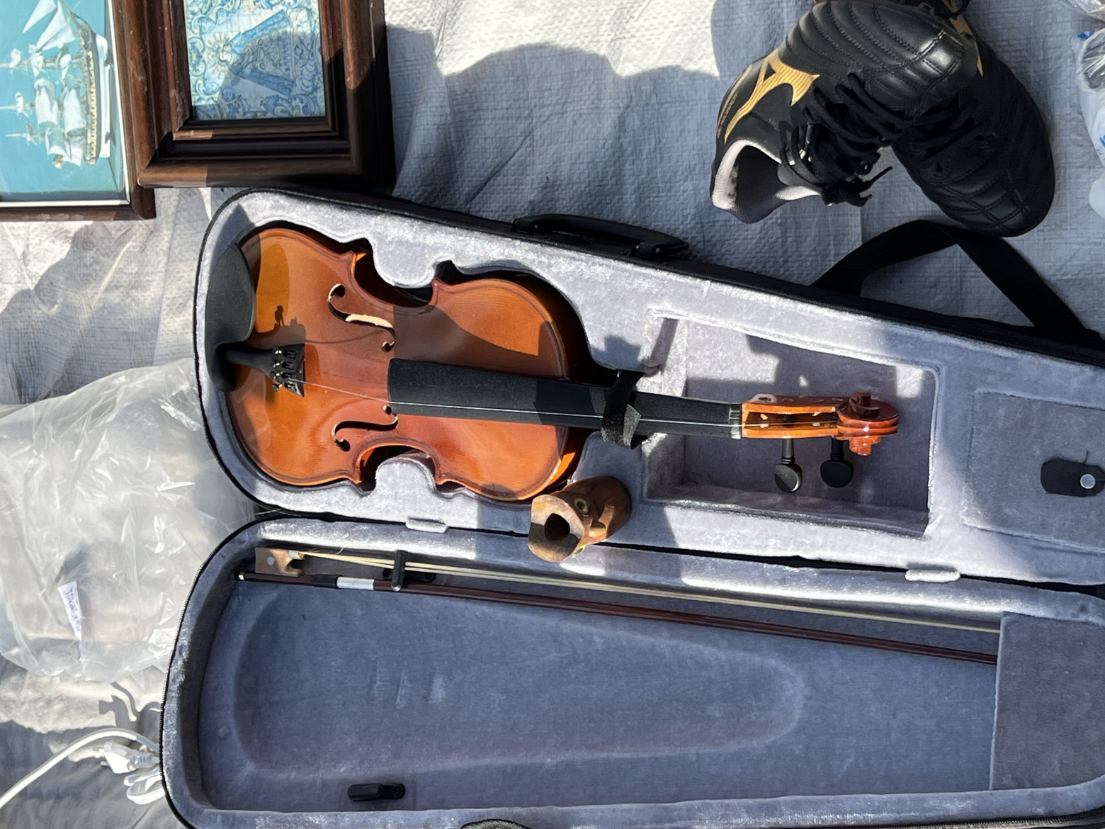 Потом — скрипка. Честно говоря, я вообще не разбираюсь в них, потому нужна помощь, чтобы определить, относительно ли ценный это инструмент или ширпотреб.