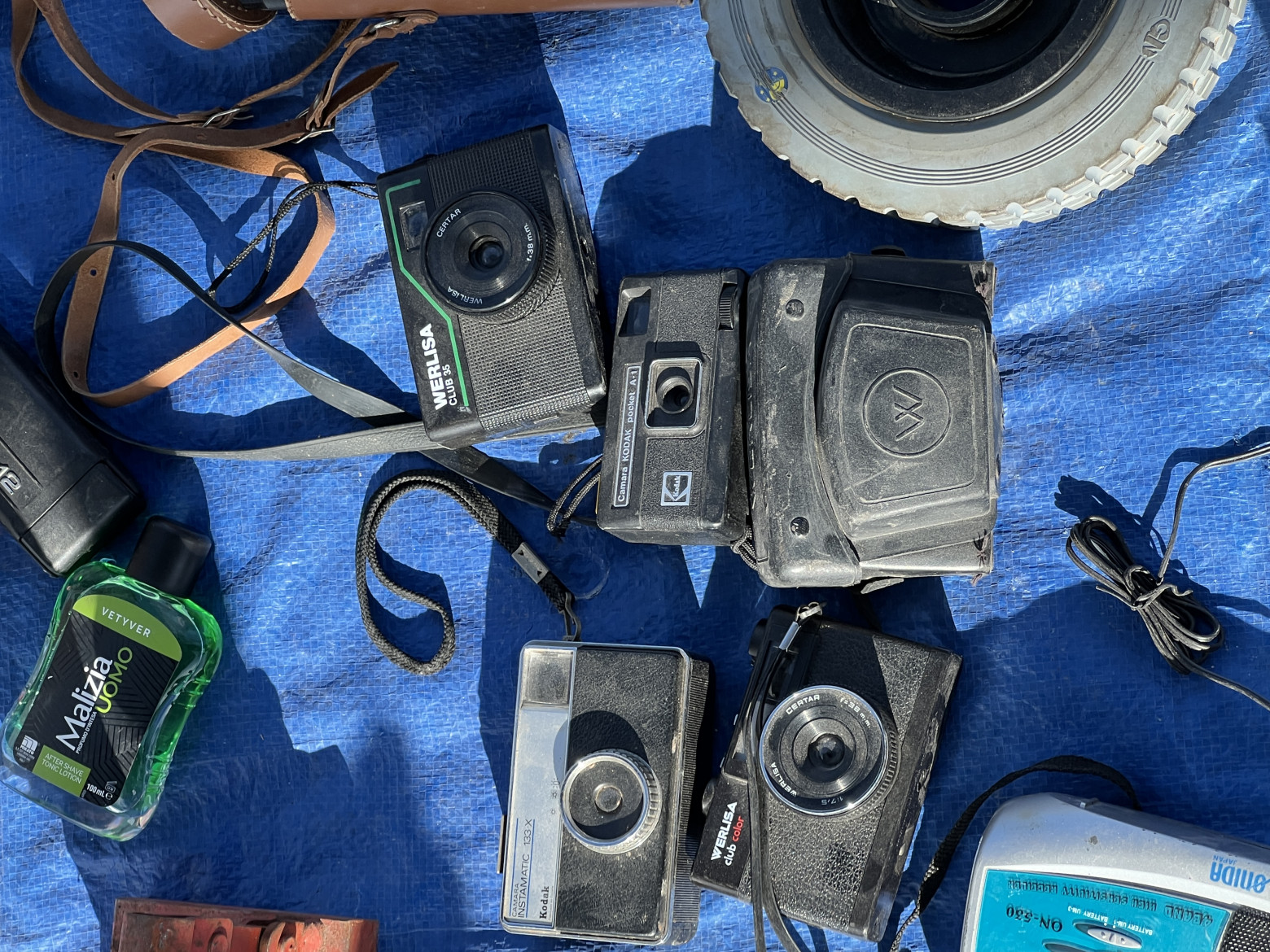И еще несколько камер, совсем уж дешевых, на мой взгляд. Среди них видно несколько моделей испанской марки Werlisa — Club 35 и Club Color, а также камеру Kodak Instamatic 133-X. Эти камеры выпускались в 1960–1980-х годах и использовали 35-миллиметровую или кассетную пленку. Werlisa была популярна в Европе как доступная альтернатива немецким и японским моделям, а Kodak Instamatic отличалась простотой загрузки кассет. Все это — типичные примеры бытовых фотоаппаратов эпохи пленки, рассчитанные на любительскую съемку.