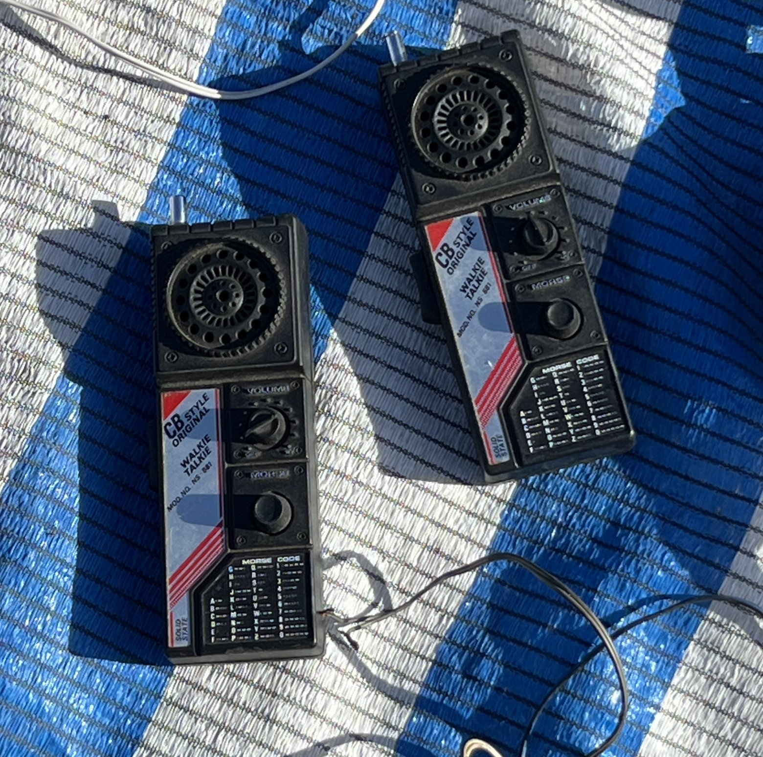 Ну и пара портативных радиостанций типа «walkie-talkie» CB-Style Original, работающих в гражданском диапазоне (CB, около 27 МГц). Эти устройства использовались для коротковолновой связи на небольшие расстояния без необходимости лицензии и часто применялись водителями грузовиков, туристами и радиолюбителями. На корпусе напечатан код Морзе, что упрощало передачу простых сигналов.