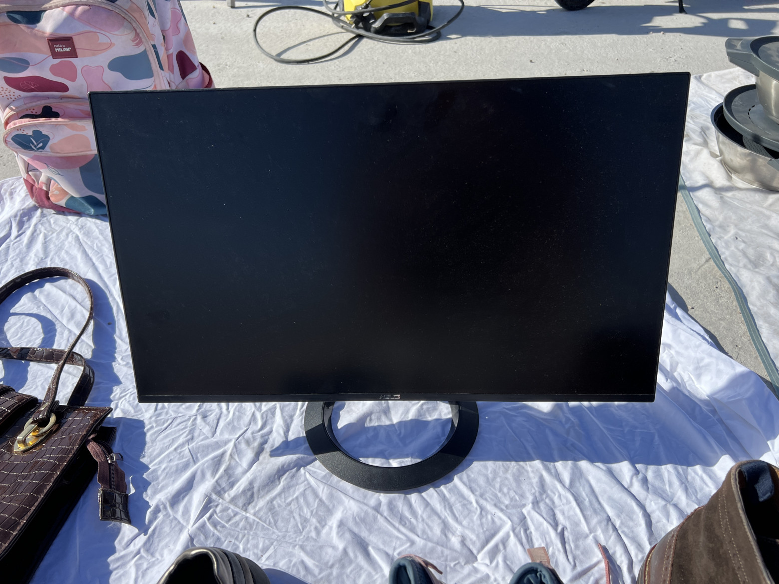 Классный современный монитор от ASUS — дюймов 17, не больше. Очень тонкий, я забыл сбоку сфотографировать. Выглядит классно, экран не разбит.