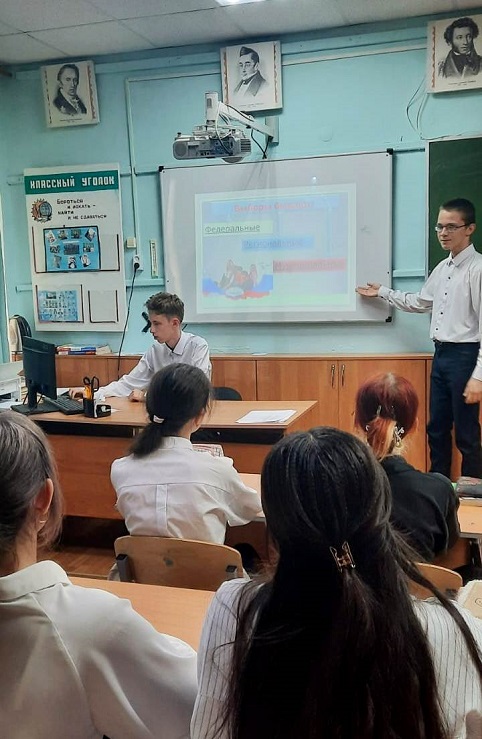 В школе № 233 Знаменска одиннадцатиклассники приняли участие в интерактивном классном часе «Голосует молодежь», где моделировали избирательные ситуации, дискутировали и делились своим видением будущего страны.