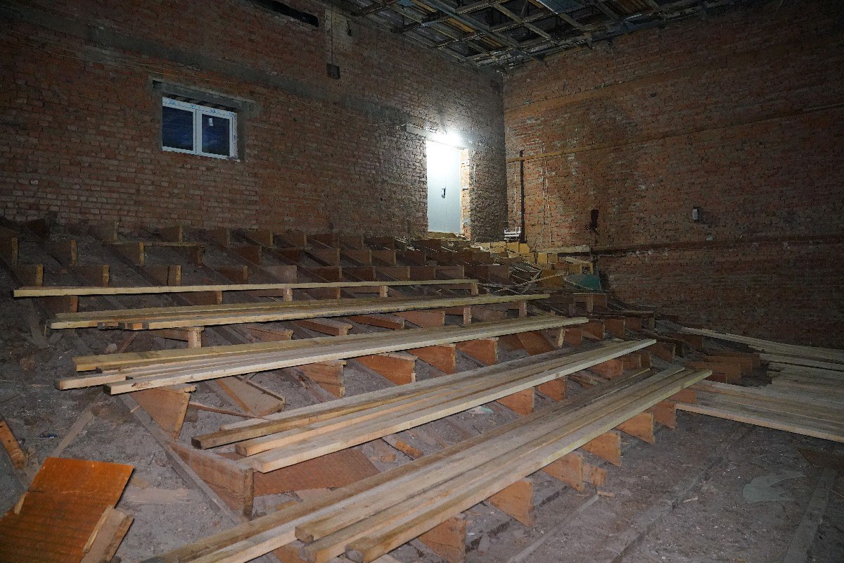 В здании площадью 3 тыс. квадратных метров полностью отремонтировали крышу и часть фасада, сейчас идет замена инженерных сетей, окон, дверей, реконструкция системы вентиляции и ремонт внутренних помещений.