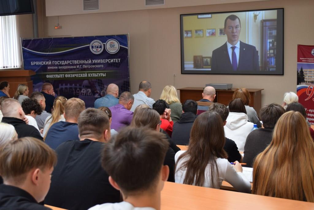 На площадке Брянского государственного университета имени академика И.Г. Петровского Всероссийский спортивный диктант написали более 150 человек – преподаватели, студенты и выпускники БГУ, тренеры спортивных школ Брянской области. В их числе: мастер спорта России, Чемпион мира по рукопашному бою, магистрант факультета физической культуры А. Горохов, мастер спорта Россиипо рукопашному бою, неоднократная чемпионка и призер первенств России по рукопашному бою, студентка факультета физической культуры В. Иващенкова, мастер спорта России по спортивной гимнастике, преподаватель кафедры физического воспитания О.Н. Опалева, мастер спорта России по спортивной акробатике, преподаватель кафедры физического воспитания Ю.А. Украинцева.