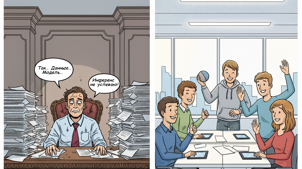 Инференс и обучение нейронных сетей — по своей природе массово-параллельные задачи. Графические ускорители сокращают время обучения моделей с недель и месяцев до дней и часов, а также обеспечивают инференс в режиме реального времени, без чего не обходятся интерактивные сервисы: