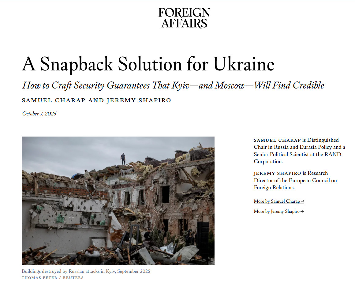 Интересно, что предложенная модель фактически совпадает с концепцией, ранее озвученной Томасом Грэмом - бывшим помощником президента США и экспертом Совета по международным отношениям. Он также говорил о необходимости закрепить юридически автоматический возврат санкций и гарантировать поставки вооружений, но без прямого включения Украины в систему коллективной обороны НАТО. Грэм называет такую конструкцию "страховочными гарантиями" - не союзом, а договором о поддержке, который устраивает и Киев, и западные столицы.