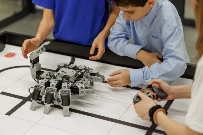 Руководитель ИТ-полигона Никита Аверьяков продемонстрировал технические возможности нового оборудования. Семиклассники осваивают управление беспилотными летательными аппаратами на тренажёрах и реальных дронах. Ученики работают с сервоприводами для программирования роботов.