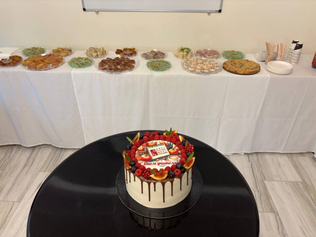 Поздравление от директора Русского дома в Афинах В.В. Сидлеронка зачиталa Э. В. Филиппиду. В своём обращении директор подчеркнул, что труд учителя — это не просто профессия, а призвание и особая миссия. Он пожелал педагогам здоровья, вдохновения, благодарных учеников и новых успехов в их благородном деле.