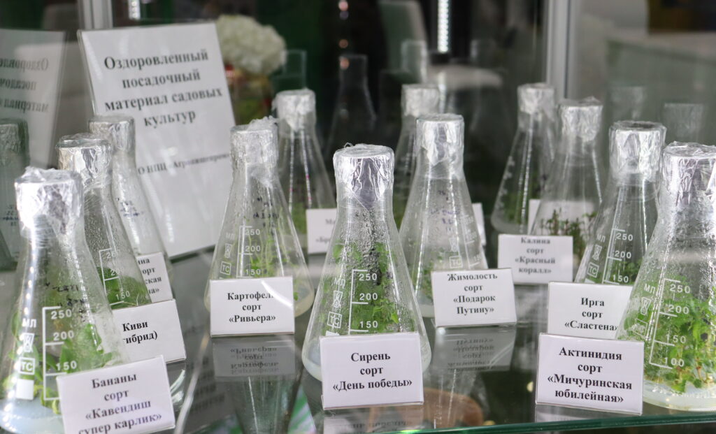 Мичуринский государственный аграрный университет и центр «Агропищепром» представили оздоровленный посадочный материал, выращенный в лаборатории клонального микроразмножения. Центр «М-КОНС-1» из Мичуринска, производящий консервы для космонавтов, и кооператив «Урожай» из Бондарского района показали свою продукцию.