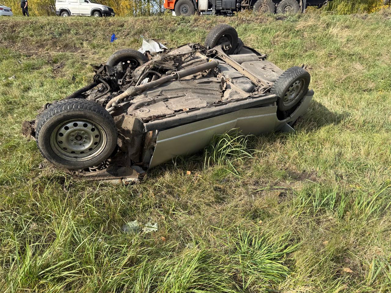 На фотографиях видно, что оба автомобиля полностью смяты от сильного столкновения. Одна из них перевернулась на крышу.