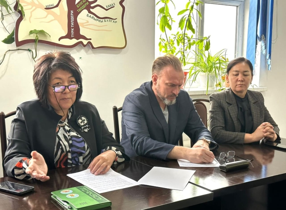 6 октября презентация проекта состоялась в г. Манас в Жалал-Абадском государственном университете имени Б. Осмонова. Ректор ЖАГУ Кенешбек Усенов и Иван Назаров обсудили перспективы сотрудничества в области алтаистики и тюркологии и подготовки кадров для работы с историко-культурным наследием юга Кыргызстана.