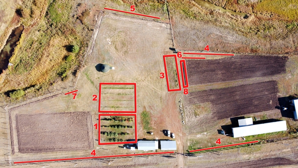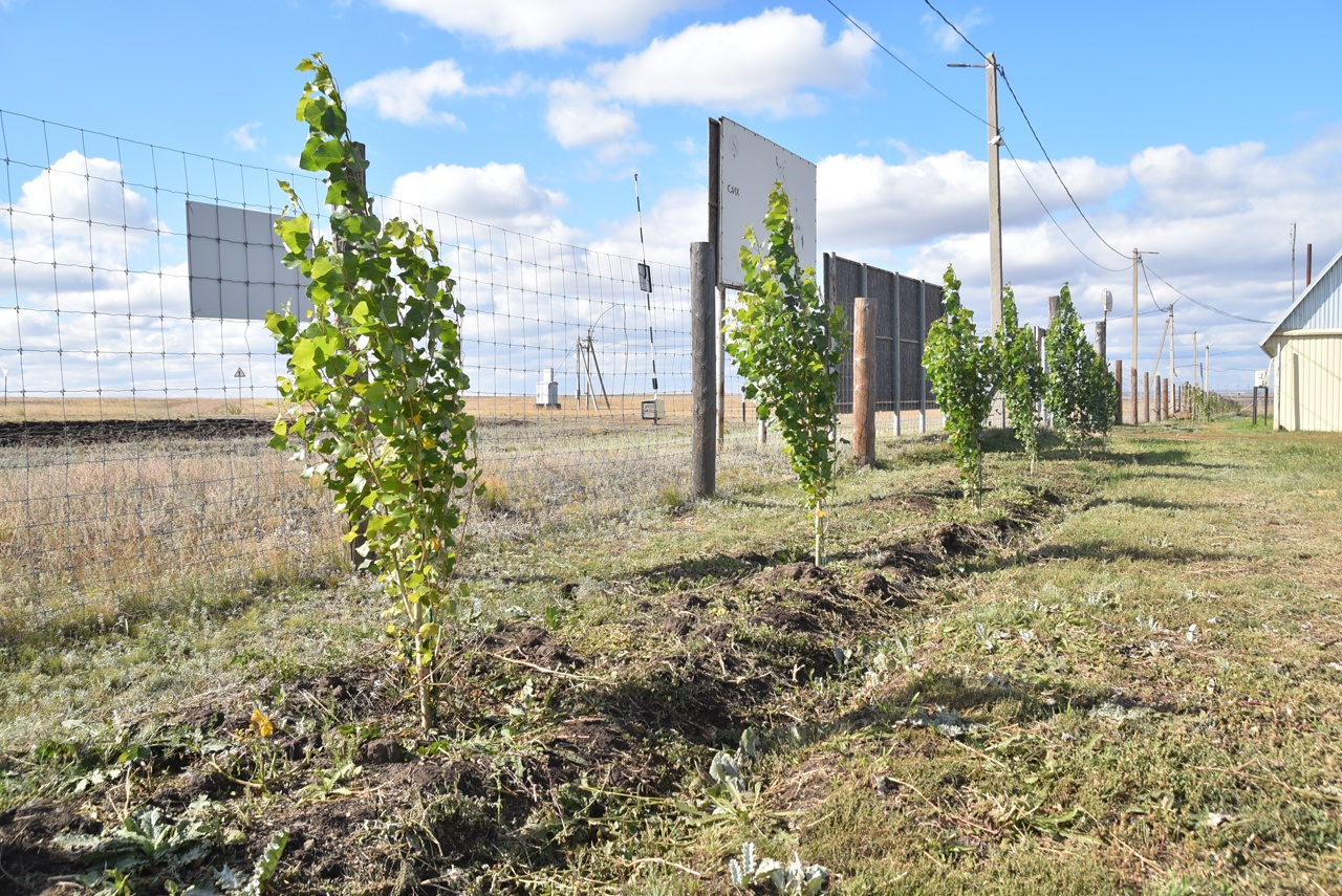 IV Лесные полосы. На территории ЦЭиМИ было предпринято три попытки заложить защитную лесную полосу. Первые два раза лесная полоса закладывались саженцами ясеня зеленого (FraxinuspennsylvanicaMarshall) и клена татарского (Acertataricum L.). Саженцы погибли из-за отсутствия полива, а также много растений погибло от домашних животных из-за неконтролируемого выпаса. Небольшая опытная площадка, заложенная разными формами ивы у ручья, существуют до сих пор. Весной 2025 г. предпринята третья попытка заложить лесную защитную полосу. Вдоль ограждений высажены саженцы тополя пирамидального (Populusitalica (DuRoi) Moench) (рис. 8), вдоль ручья высажены несколько видов ив (Salixsp.).
