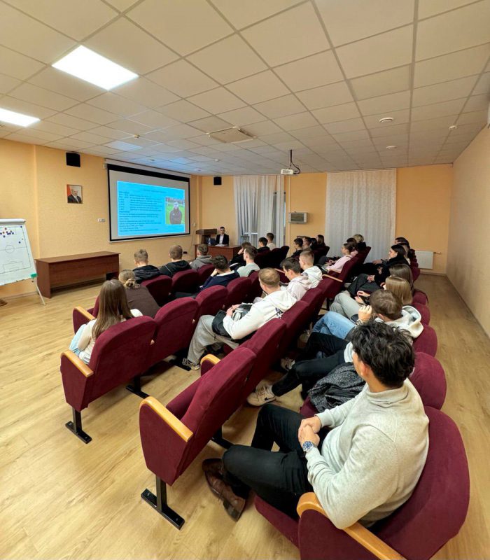 В ходе выездного занятия студенты встретились с заместителем начальника технического центра по тренерскому образованию АБФФ, выпускником программы УЕФА по футбольному менеджменту Евгением Сергеевичем Шпаковым, который поделился своим опытом участия в семинарах и конференциях УЕФА, рассказав о международных футбольных структурах – FIFA, UEFA и континентальных конфедерациях – и особенностях сотрудничества АБФФ с этими организациями.