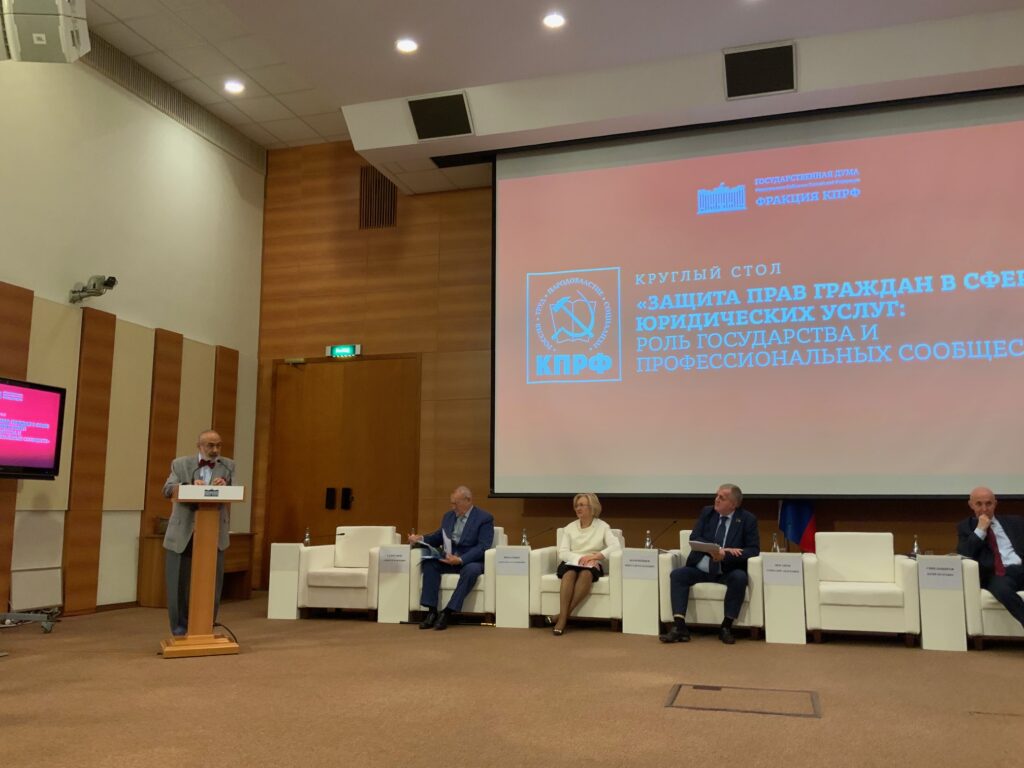 9 октября 2025 года в Государственной Думе ФС РФ прошел круглый стол на тему «Защита прав граждан в сфере юридических услуг: роль государства и профессиональных сообществ», организованный фракцией КПРФ с участием депутатов Государственной Думы, представителей федеральных и исполнительных органов власти, Министерства юстиции РФ, адвокатского сообщества, вузов, общественных организаций.