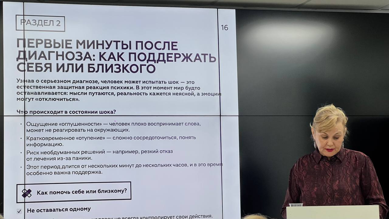 Форум стал площадкой и для презентации уникальной брошюры по самопомощи для онкопациентов и их семей. Её автор — Зульфия Галимова, онкопсихолог из Альметьевска. В брошюре — практические техники, аудиомедитации, методики визуализации и осознанного дыхания. Всё то, что может стать спасательным кругом в минуты тревоги и страха.
