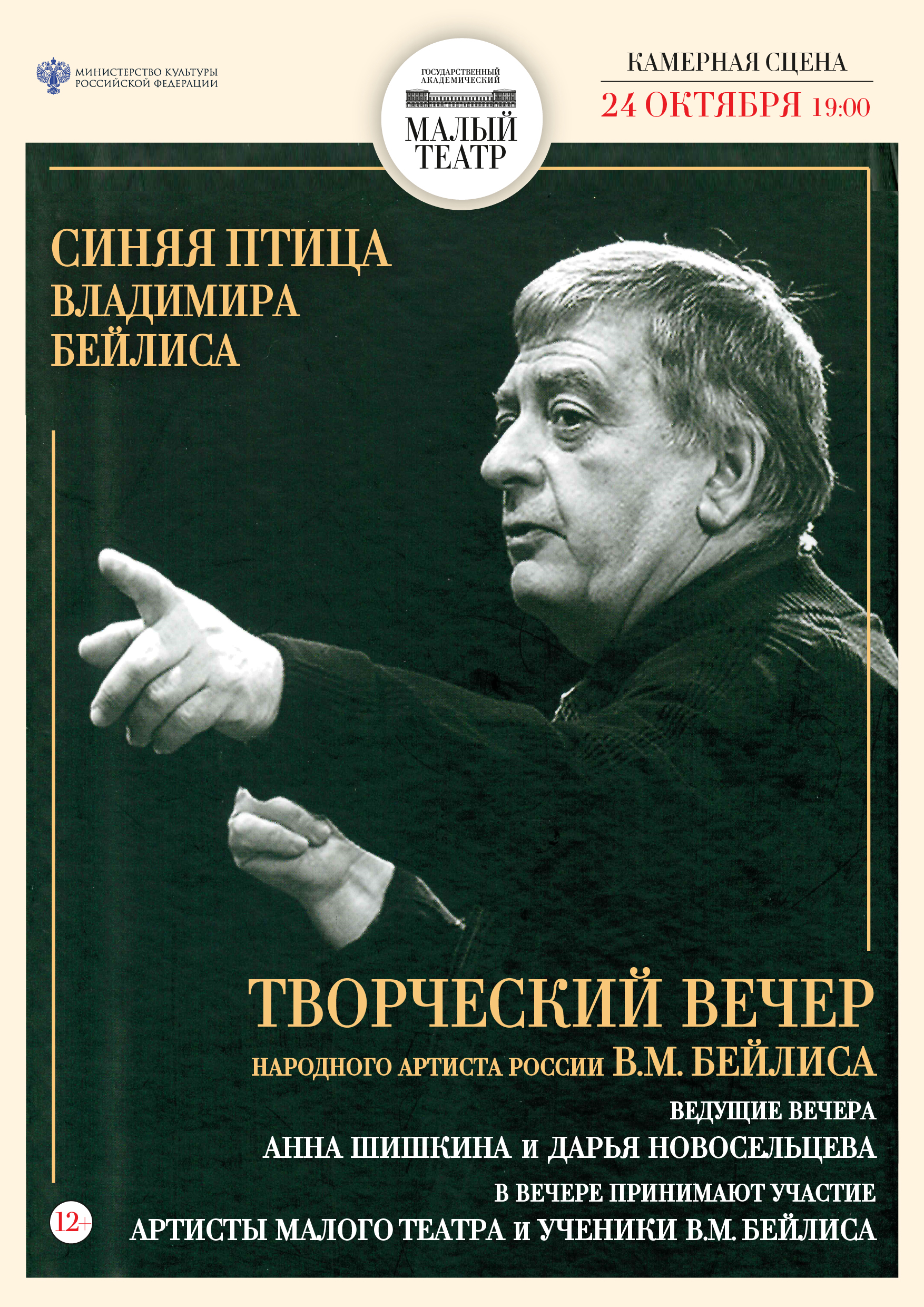 Дорогие друзья, 24 октября с радостью приглашаем вас на творческий вечер народного артиста России, лауреата премии Правительства России Владимира Бейлиса «Синяя птица Владимира Бейлиса».